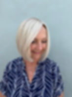 Grey coverage on roots, gloss or toner, blowout & trim.